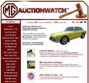 of the MG AUCTIONWATCH website has a range of useful options you can access in